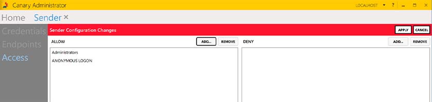 - Open the Canary Admin application on your Ignition Gateway and navigate to the Sender tile