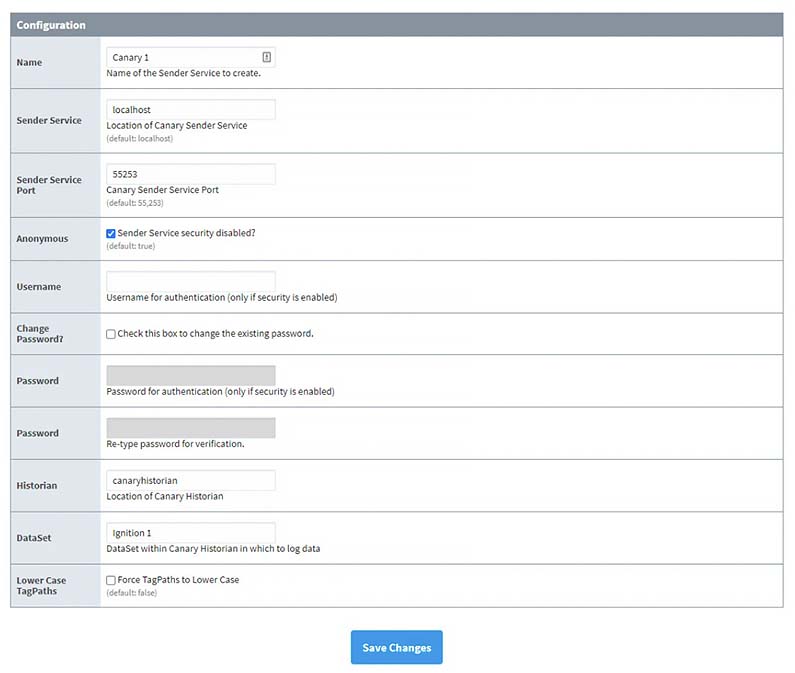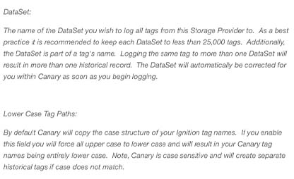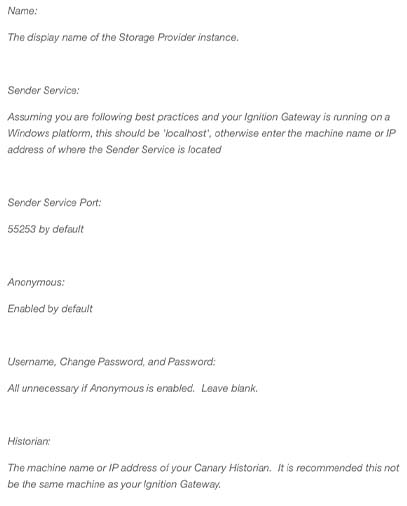 Configure Canary as a tag Storage Provider within Ignition by completing the following fields: