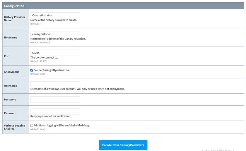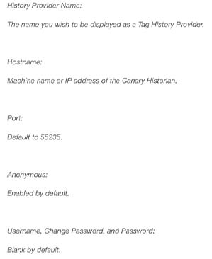 Configure Canary as a tag History Provider within Ignition by completing the following fields: