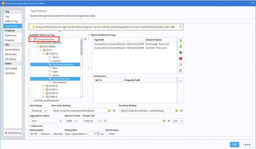 6. Open your Ignition Designer and browse the Canary Historian referenced above as Tag History Provider. Note, not only will you be able to browse the historian archive, but Canary will also expose any Virtual Views and Asset Models created on top of the historical record