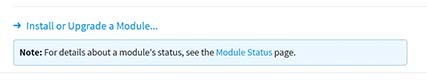 2. Scroll down the page past all the modules, until you see the option to “Install or Upgrade a Module…”. Click on the link