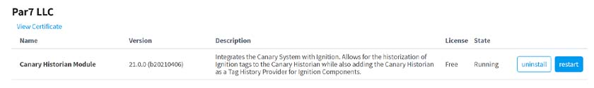 5. Upon successful installation, you will be redirected to the Module page, and when you scroll down to the bottom of the page, you will be able to view the Canary certificate and module there